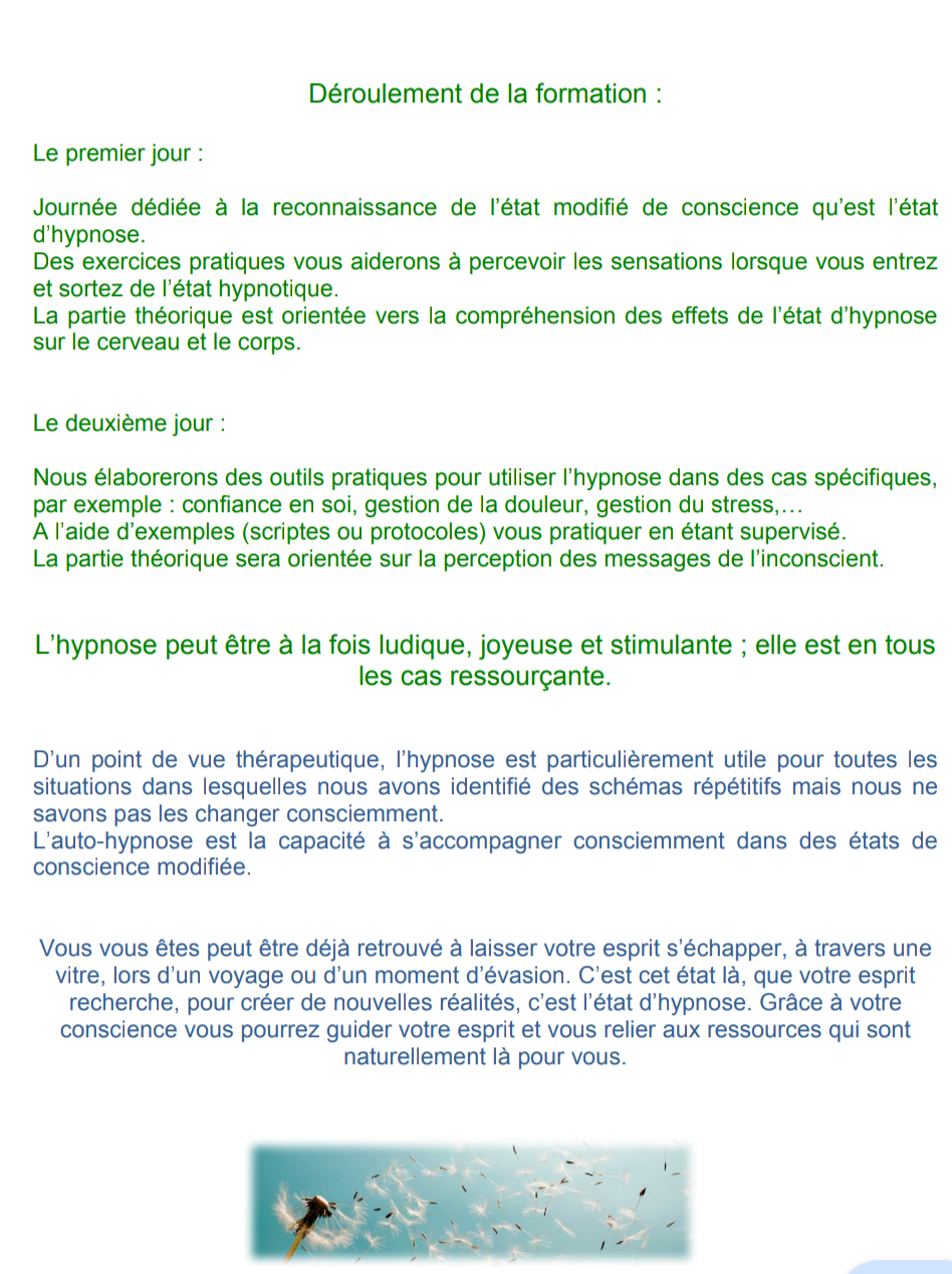 Stage en Auto-Hypnose - 8 - 9 mars 2025